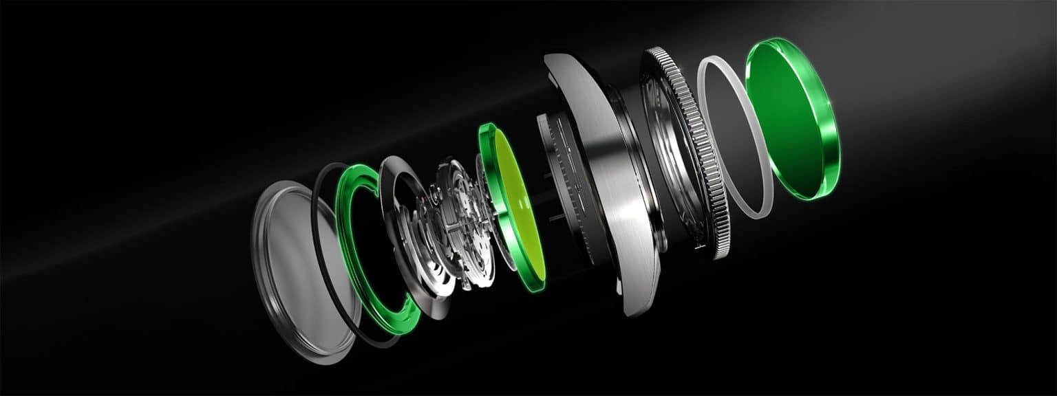 I tillegg til de eksisterende og velprøvde egenskapene, er «New DS Concept Extreme Shock Resistance» forbedret på tre punkter. Urverket er skrudd inn i kassen ved hjelp av en tynn ring-formet mutter (1). Sammen med en wafer-tynn metallplate mellom tallskiven og urverket (2), økes stabiliteten ved støt og vibrasjoner. I tillegg er safirglasset forsterket, og for flere modeller lett buet (3), slik at ytre krefter som støt og slag distribueres jevnere for større motstandsdyktighet.