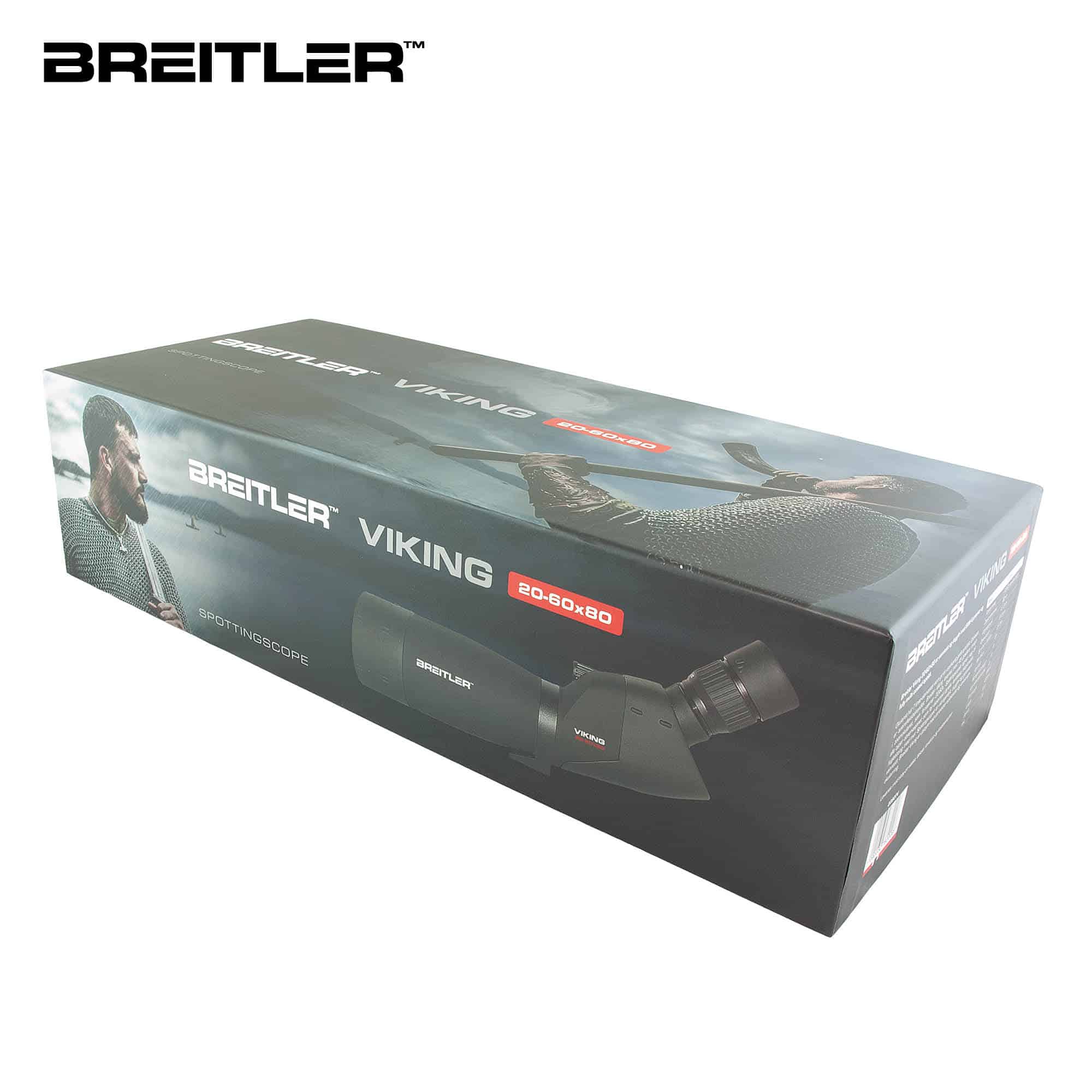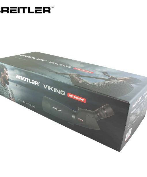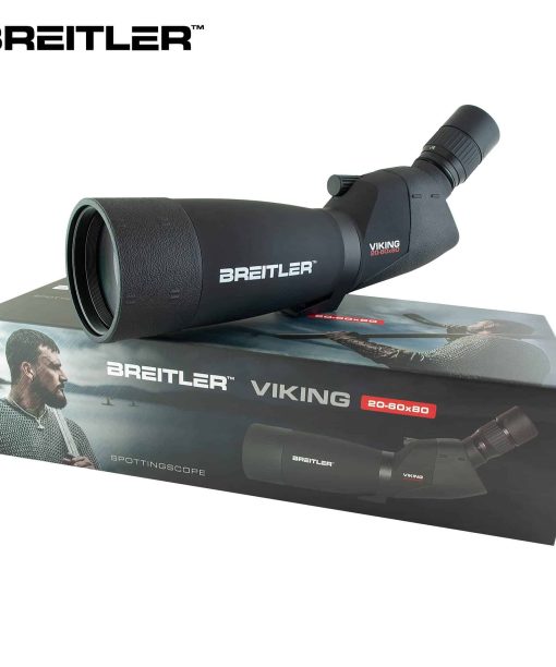 Okularet har 7 linse-elementer som gir et usedvanlig godt synsfelt. Optikken er antirefleksbehandlet. Breitler Viking leveres med 45 graders innsyn i zoomokularet, som forstørrer 20-60x. Spottingscopet egner seg til alle typer observasjoner, som for eksempel dyreliv, landskap, skipstrafikk, fugletitting med mer. Spottingscopet er nitrogenfylt, duggfri og garantert vanntett. Breitler Viking er utstyrt med uttrekkbar solblender og «twist-up»-okularring.