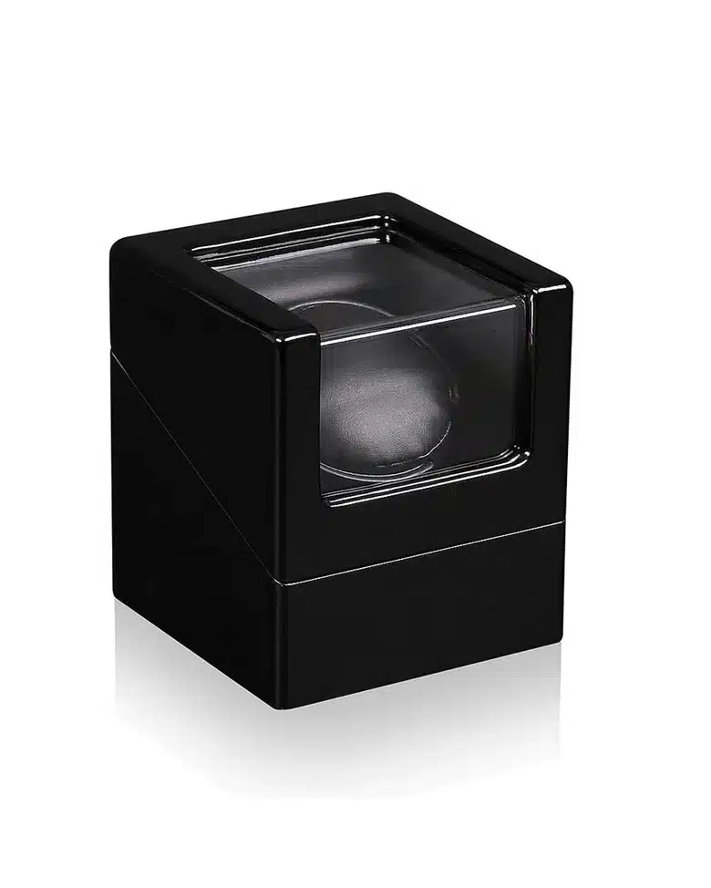 En meget praktisk klokkewinder som holder den automatiske klokken igang. Denne er praktisk for å holde klokken din gående dersom den ikke brukes jevnlig ettersom den simulerer armbevegelsene som normalt genererer strøm. Mål: 13 x 13 x 15 cm